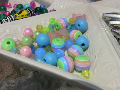 When I first opened my package from Hannah I found so much and such variety that I was overwhelmed. I decided to focus on selecting the clasp and focal that I will use. We are required to use a focal and a clasp from the mix. Everything else is optional.